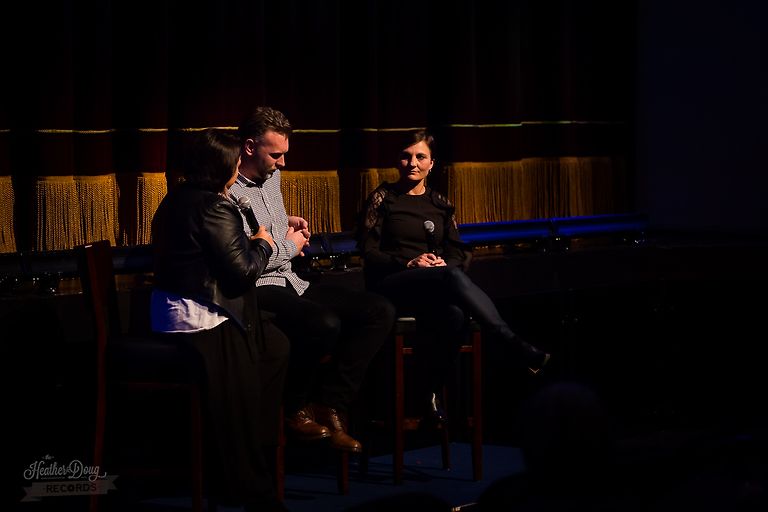NZIFF Host Jo Scott, Tim McInnes (Director), and Josie Ogden Schroeder (Executive Producer), answering questions from the Isaac Theatre Royal audience The Heather & Doug Records